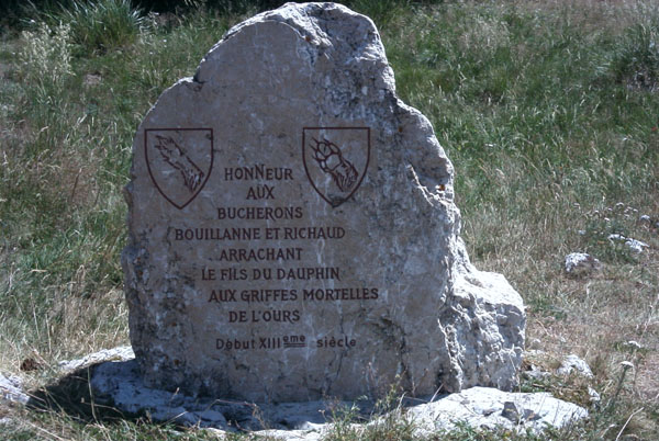 La tradition veut que deux bûcherons de la vallée, François Bouillanne et Michel Richaud, travaillant en forêt du quartier de Malatra qui unit les hauts plateaux d’Ambel et de Lente, sauvèrent d’une mort certaine et horrible un chasseur de haute naissance, prince souverain du Dauphiné, en tuant un ours énorme qui ne lui laissait d’autre choix que ses griffes ou un saut dans l’abîme. Les deux hommes ayant refusé l’or du prince, celui-ci les anoblit et leur donna des armes « d’azur à une patte d’ours d’or mise en bande ». D’autres communautés villageoises cherchent à accaparer l’événement mais l’Histoire tranche en faveur du Pays de Quint.