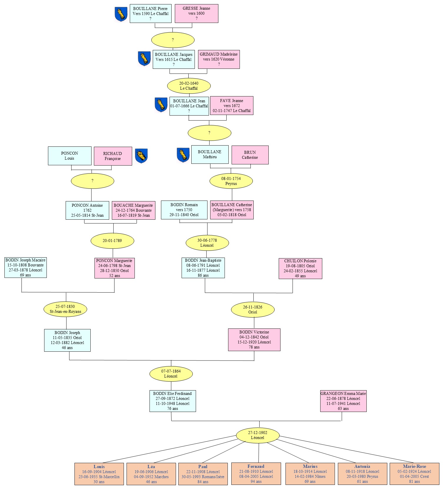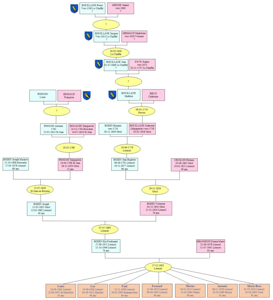 Les Bouillanne et les Richaud constituent deux lignées d’une petite noblesse rurale, reconnue unanimement comme très ancienne et dont l’origine se fonde sur une des plus belles histoires du Dauphiné. Fort modestes par l’étendue et la valeur de leurs biens, quelque paralysés dans leurs entreprises par la crainte de déroger et donc demeurés pauvres, mais souvent grands dans la manière de surmonter l’adversité, ils ont de tout temps renforcé leur étonnant compagnonnage par les liens matrimoniaux.