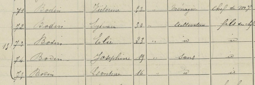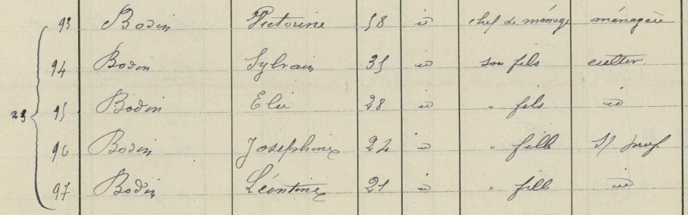 On peut noter (voir plus bas) que sur le recensement de 1901, Victorine est encore indiquée comme « Chef de ménage » et que ses 2 fils Sylvain et Élie sont notés « ses fils ».
