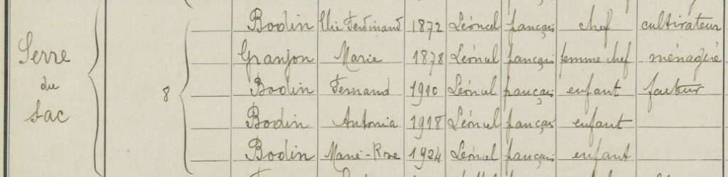 En 1926, pour la 1ère fois, la famille est recensée dans le quartier maintenant nommé Serre-du-Sac (bien que n’ayant à priori pas déménagée).