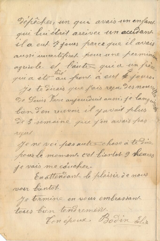 Lettre Élie à Marie 5 novembre 1916