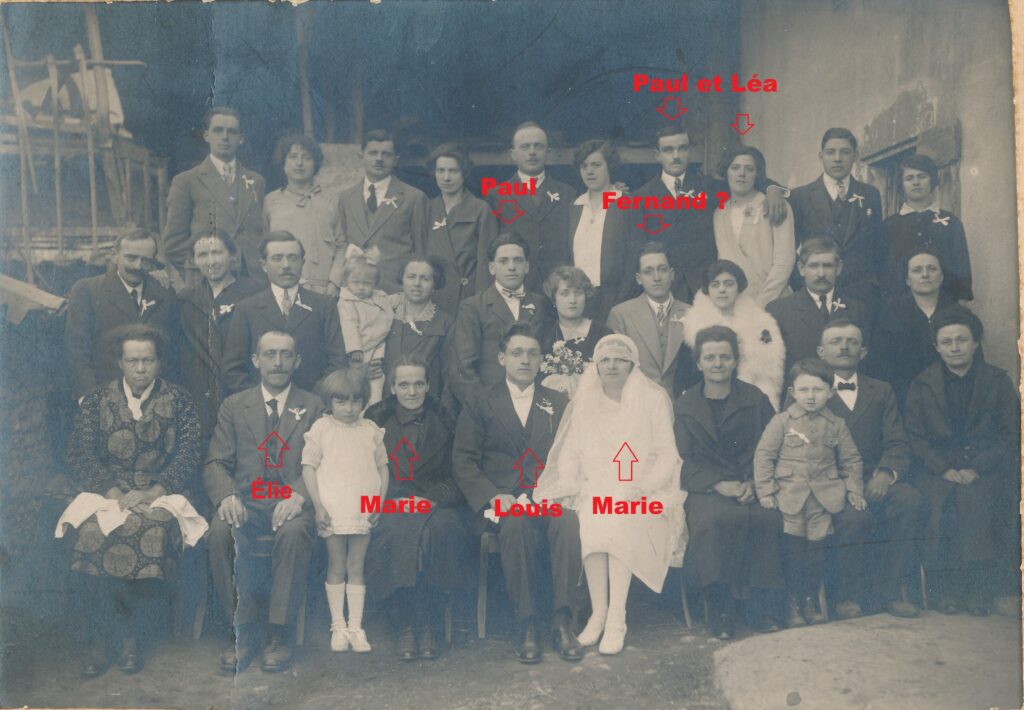 Mariage Marie et Louis – 6 avril 1929Louis et LéaMarie et Louis Parc de la Tête-d’Or Lyon 1931Louis au service militaireLouis au Serre-du-SacLouis (à gauche de la moto, les mains dans les poches) et Paul (sur la moto) vers 1930 vogue à HostunLouis (qui joue du tambour) 1924Maurice, Charles, Pierre et Marie-Lise – 23 juin 1940Antonia, Marie-Rose, « La Mané » (la maman de Marie), Marie-Lise